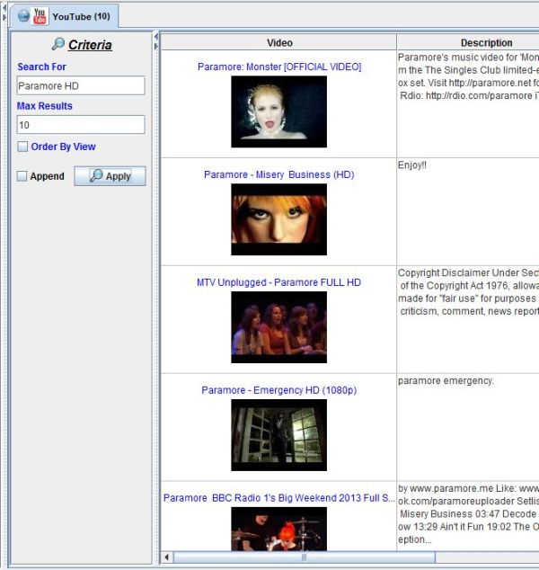 Results from parsing You Tube RSS video feed as defined above