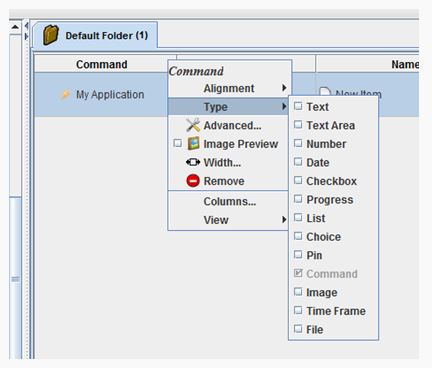 - 1) Select Command from the Type menu of the column poppup context menu.